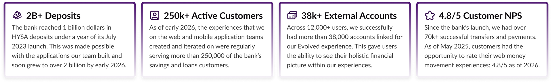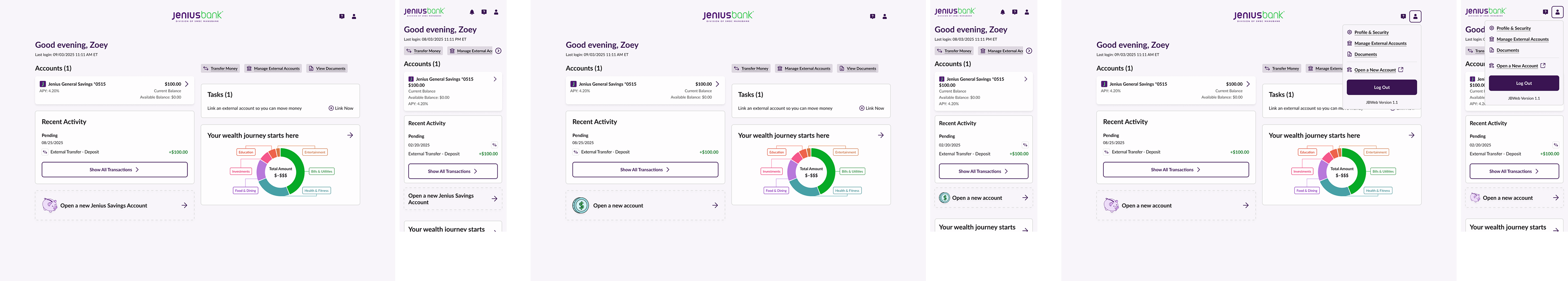 Over 3+ years at Jenius Bank, I led the evolution of the web experience from foundational architecture to scaled customer journeys. The work below represents designs I created in close partnership with product, engineering, and design collaborators. Some of my achievements and responsibilities can be found on my résumé here.